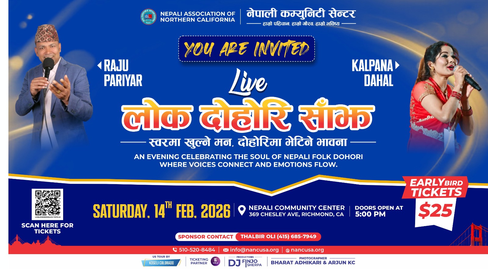 Nepali Community Center 369 Chesley Ave, Richmond🎤 𝗟𝗜𝗩𝗘 लोक दोहोरी साँझ | 𝗟𝗜𝗩𝗘 𝗡𝗘𝗣𝗔𝗟𝗜 𝗙𝗢𝗟𝗞 𝗦𝗢𝗡𝗚 𝗘𝗩𝗘𝗡𝗜𝗡𝗚 𝗪𝗵𝗲𝗿𝗲 𝘃𝗼𝗶𝗰𝗲𝘀 𝗰𝗼𝗻𝘃𝗲𝗿𝘀𝗲 𝗮𝗻𝗱 𝗲𝗺𝗼𝘁𝗶𝗼𝗻𝘀 𝗰𝗼𝗻𝗻𝗲𝗰𝘁 स्वरमा खुल्ने मन, दोहोरीमा भेटिने भावना Nepali folk music is more than songs — it carries our culture, memories, and identity. नेपाली लोकसंगीत केवल गीत होइन — यो हाम्रो संस्कृति, सम्झना, र पहिचानको आवाज हो। Join us for a meaningful evening celebrating folk …